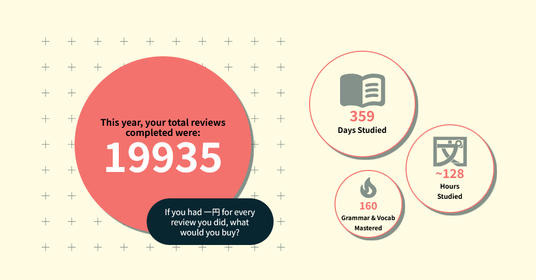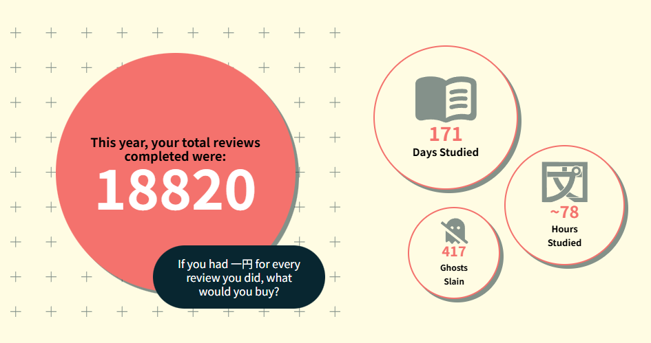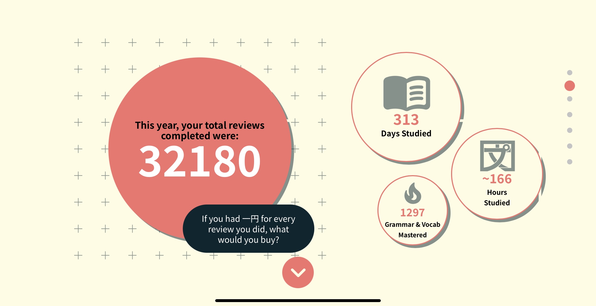 not quite sure how i managed to lose some days in the year, i’m 99% certain i didn’t miss a single day. the android app was somewhat buggy at times with me having to knock down certain things from mastered because i was quite sure they weren’t close yet at times? either way, i’m very happy with having consistently done my lessons and reviews daily for a year, having started november/december ish last year.