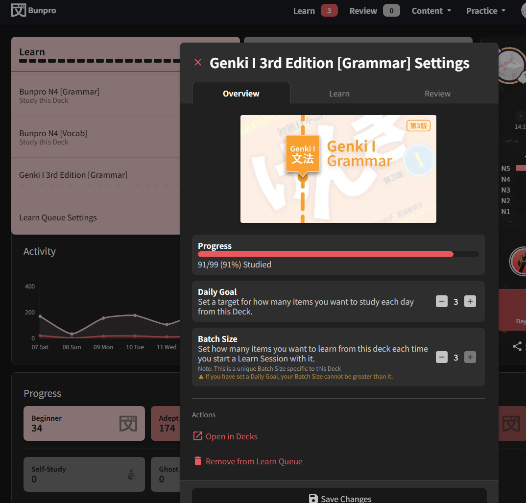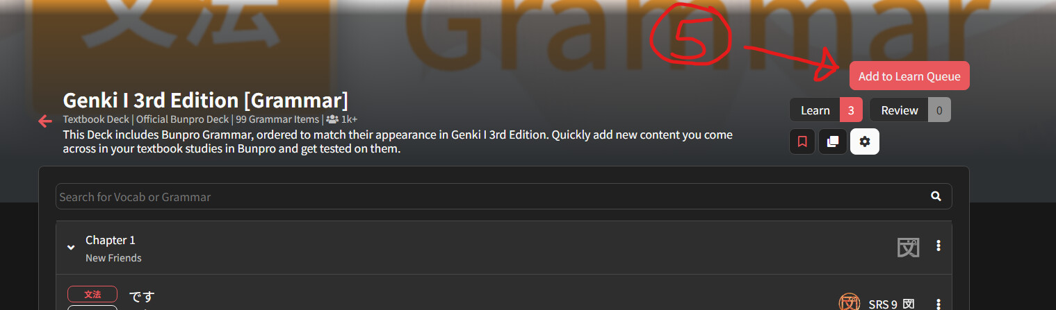 I was hoping to use Bunpro mainly to drill the grammar that I’m learning in Genki. I selected the Genki 3rd Edition path in Bunpro and got started, but it seems like there’s as much if not more of a focus on vocabulary than there is on grammar.