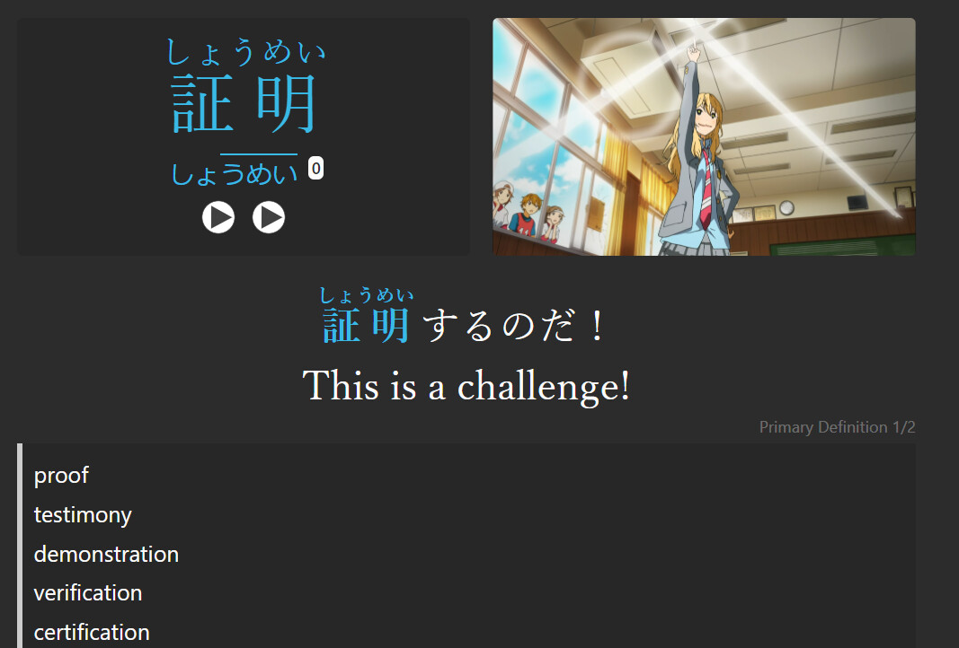 - tried to watch some anime and translate 90% of the dialogue to test myself for comprehension and Anki vocab mining, but after 1 series (blind pick on 四月は君の嘘) I limited myself to ~10 words / episode. One episode took me around 4 hours and that was too much even for me.
