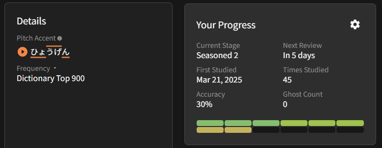 I have some grammars points that never see 30% due to however much I fails those in the earlier stages haha.