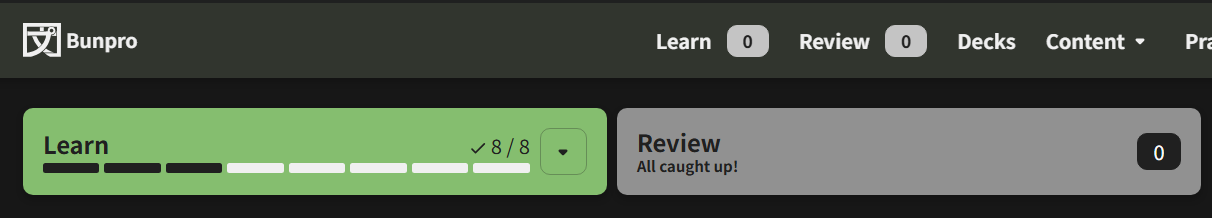 I was lazy decided to embrace chaos and didn’t do my usual breakdown of study steps. I think I’m missing something, somewhere (probably renshuu reviews).