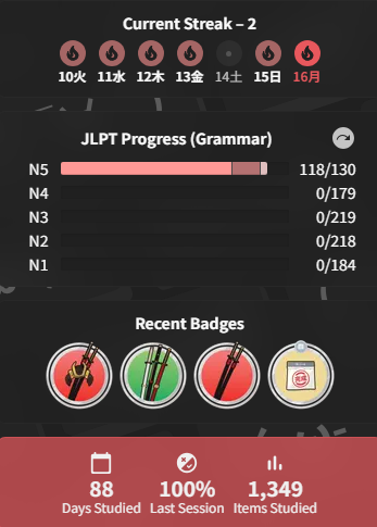 Wow @HarleyJW! That’s a lot of Japanese to fit into 88 days! Congratulations on your studies so far!