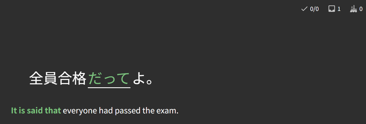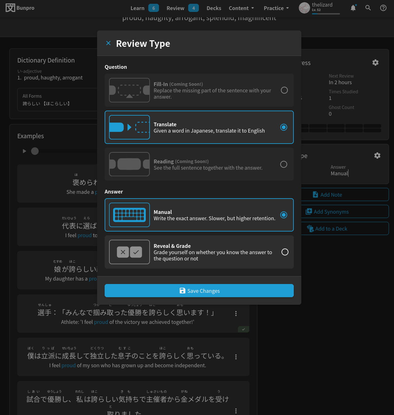 Youâll notice this on other Translate style questions, but weâre now displaying a random example sentence after answer reveal.