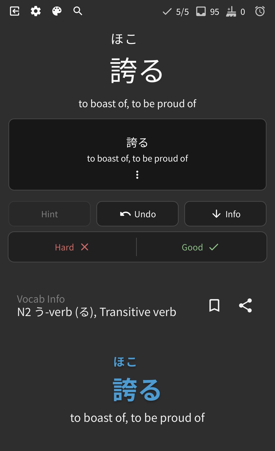 Got this situation, where it’s just the vocab flash card again in the box, rather than an example sentence: