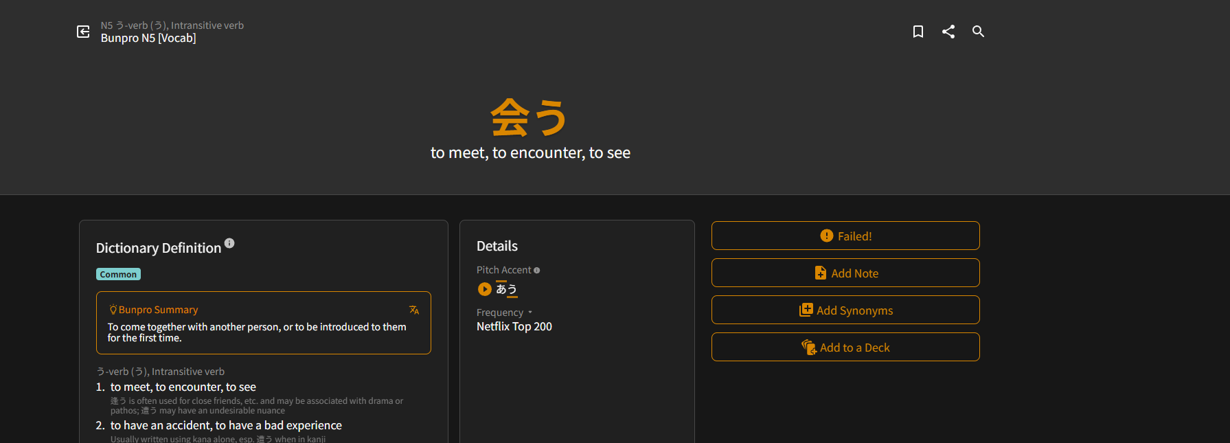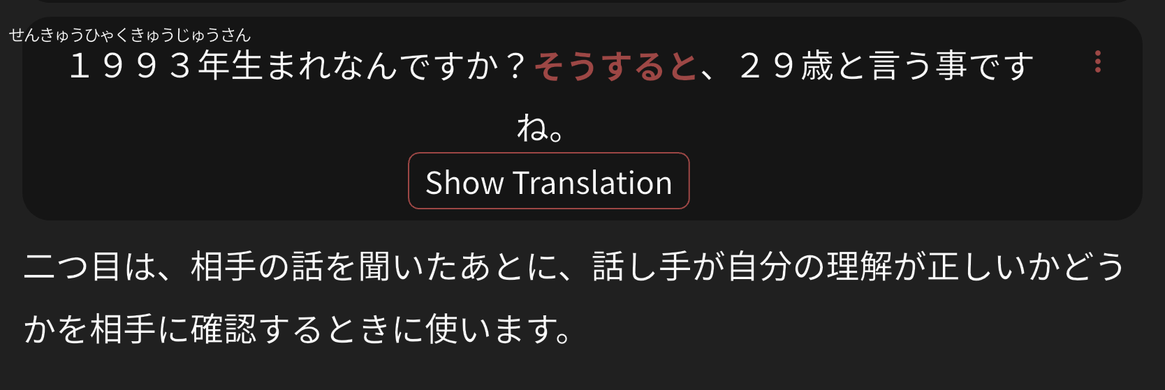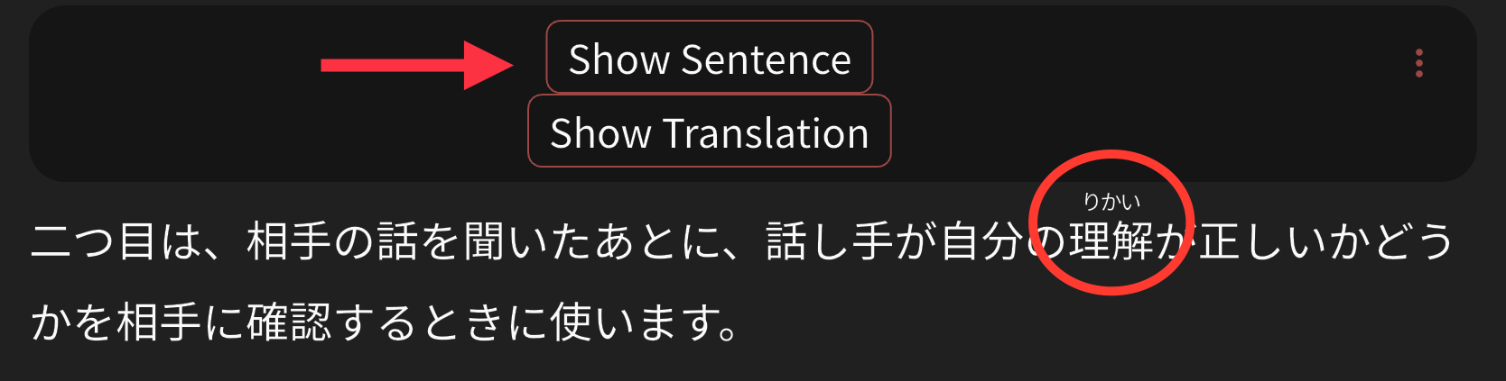 Note: this is in the iOS app, and I’ve toggled to learning in Japanese