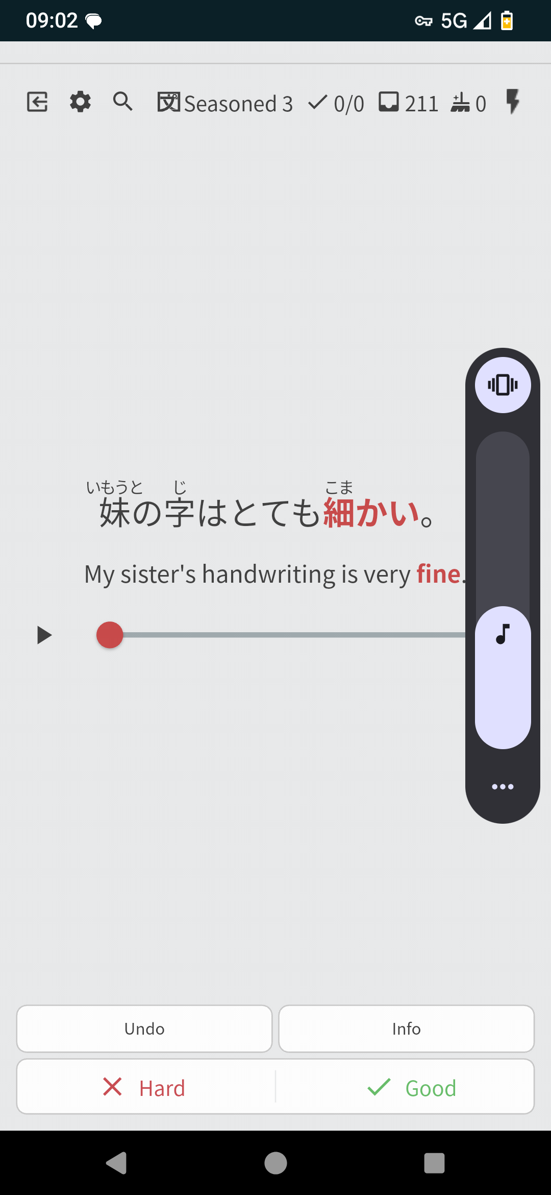 Ah, we’re not using the same review types. I’m in reading mode while you’re using fill-in. I guess audio is not available for those ?