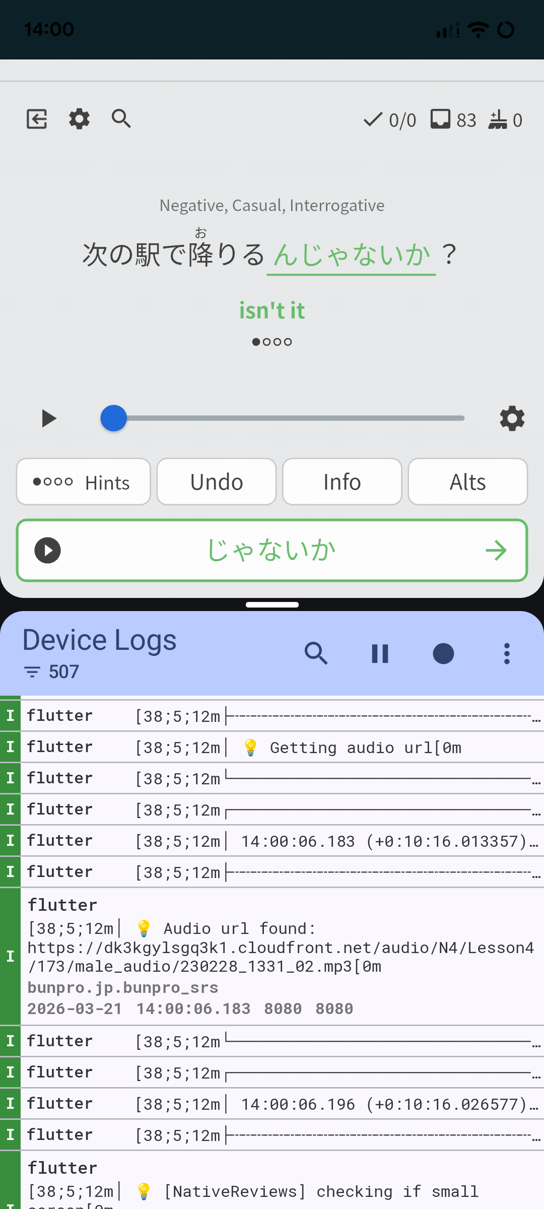 After submitting correct, it logs an audio URL, but nothing about any attempt to play. (first screenshot)