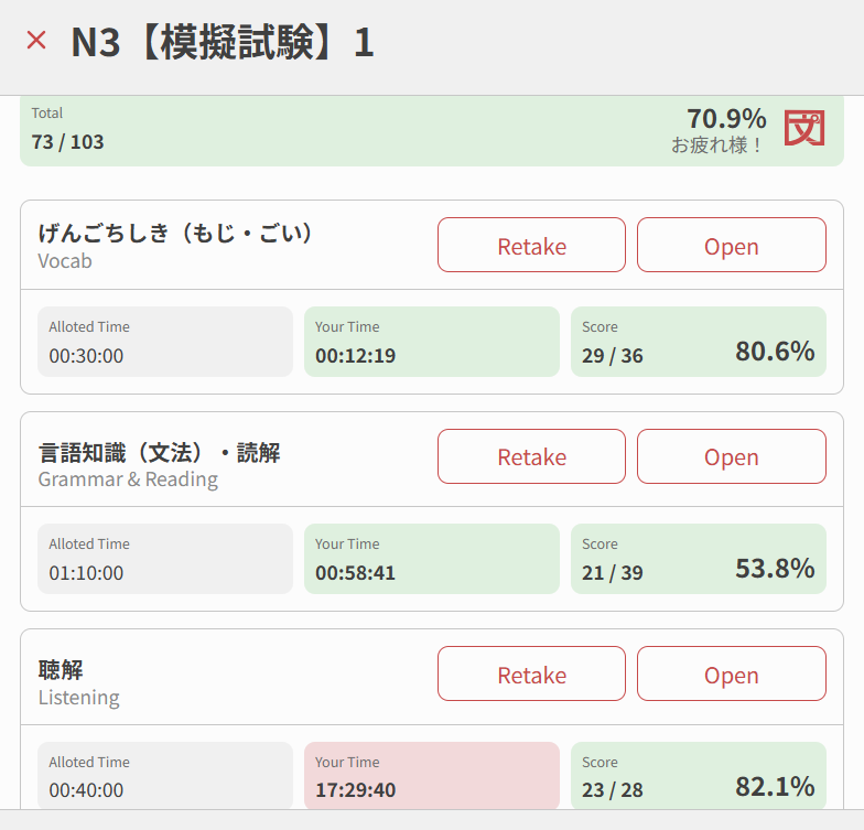 Not bad for my very first N3 practice test, that’s a true girigiri