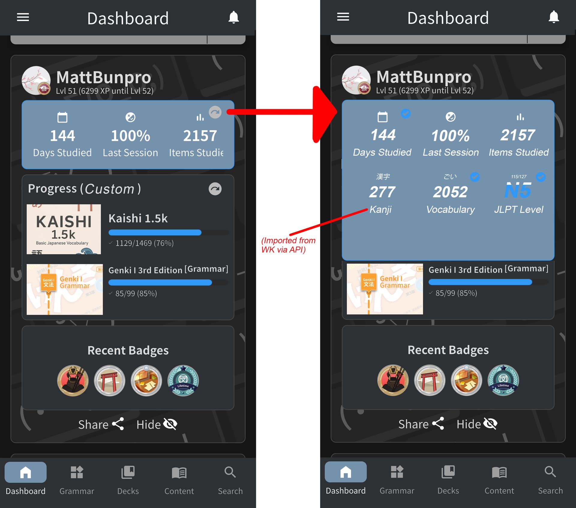 Suggestion: Make the “Learn” box on the dashboard also reflect grammar and vocab that wasn’t learned via clicking the “Learn” box.