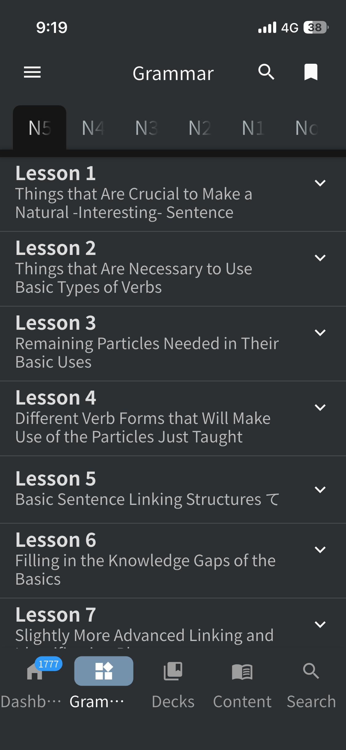 I really wish there was a way to easily see what level grammar points are at on this screen. Sometimes before a tutoring lesson I want to quickly figure out what things I’m still struggling with to do targeted practice. Maybe some kind of “sort by level” option?