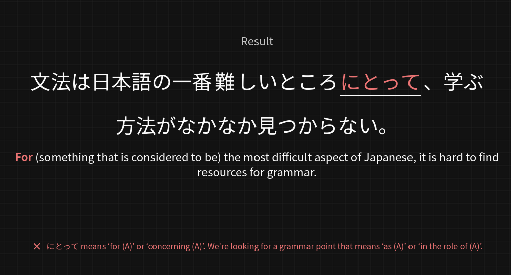 I do like the fact that there’s essentially no filter for the technical nature of topics covered in example sentences at N1+, but making it a bit more accessible would be nice.