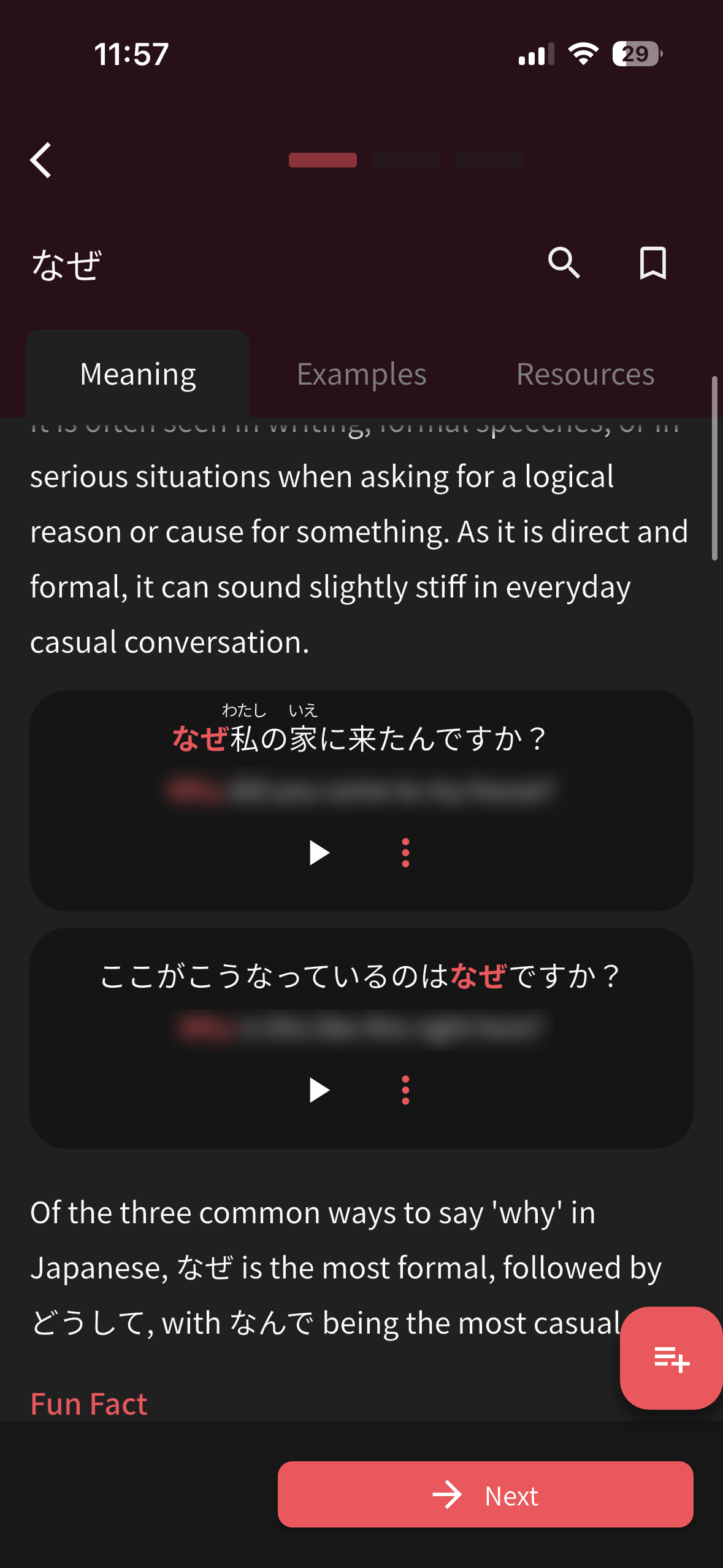 I would love the ability to have sentences in vocab or grammar examples be blurred so that I can take a stab at translating before tapping on the sentence to reveal the answer.