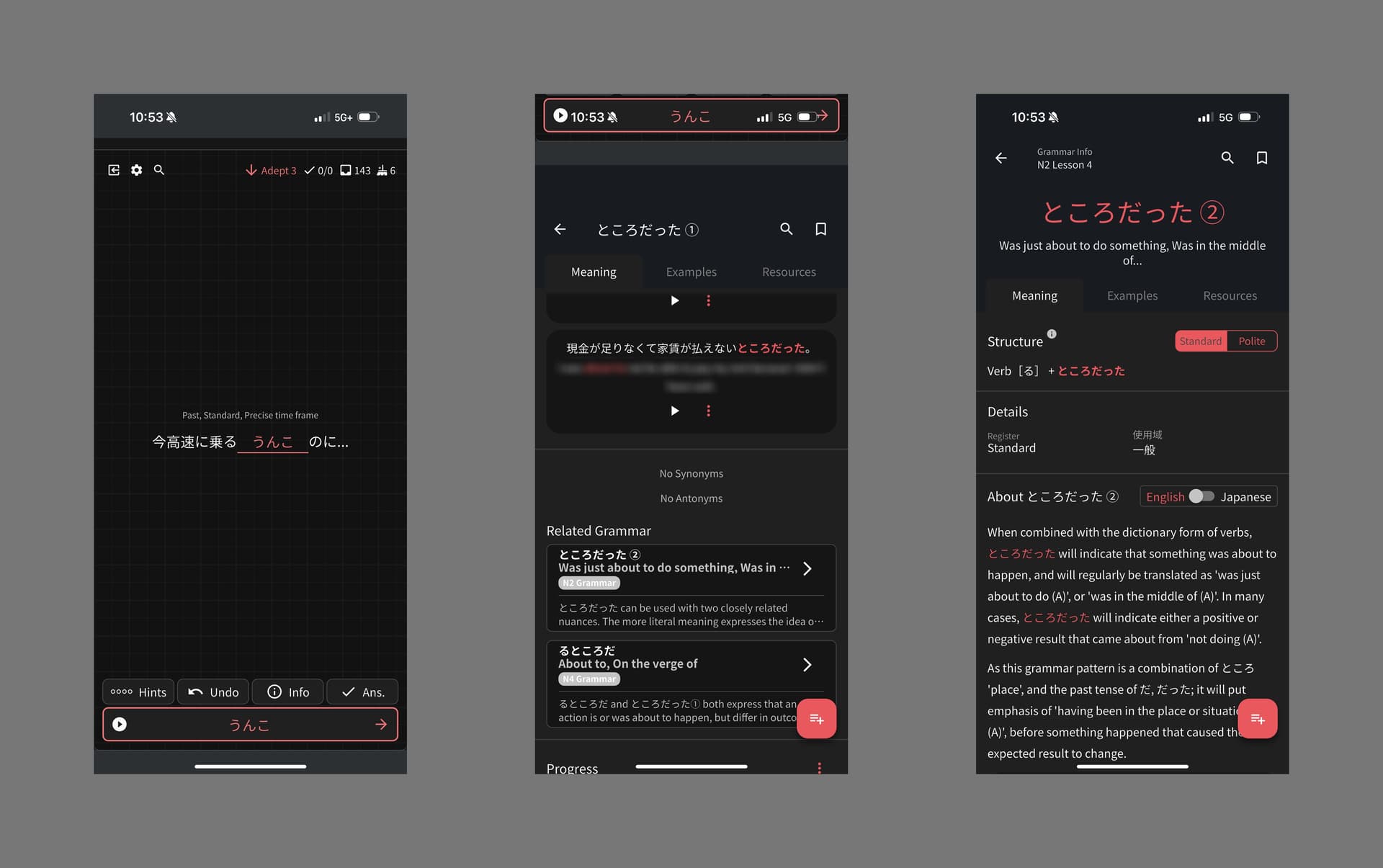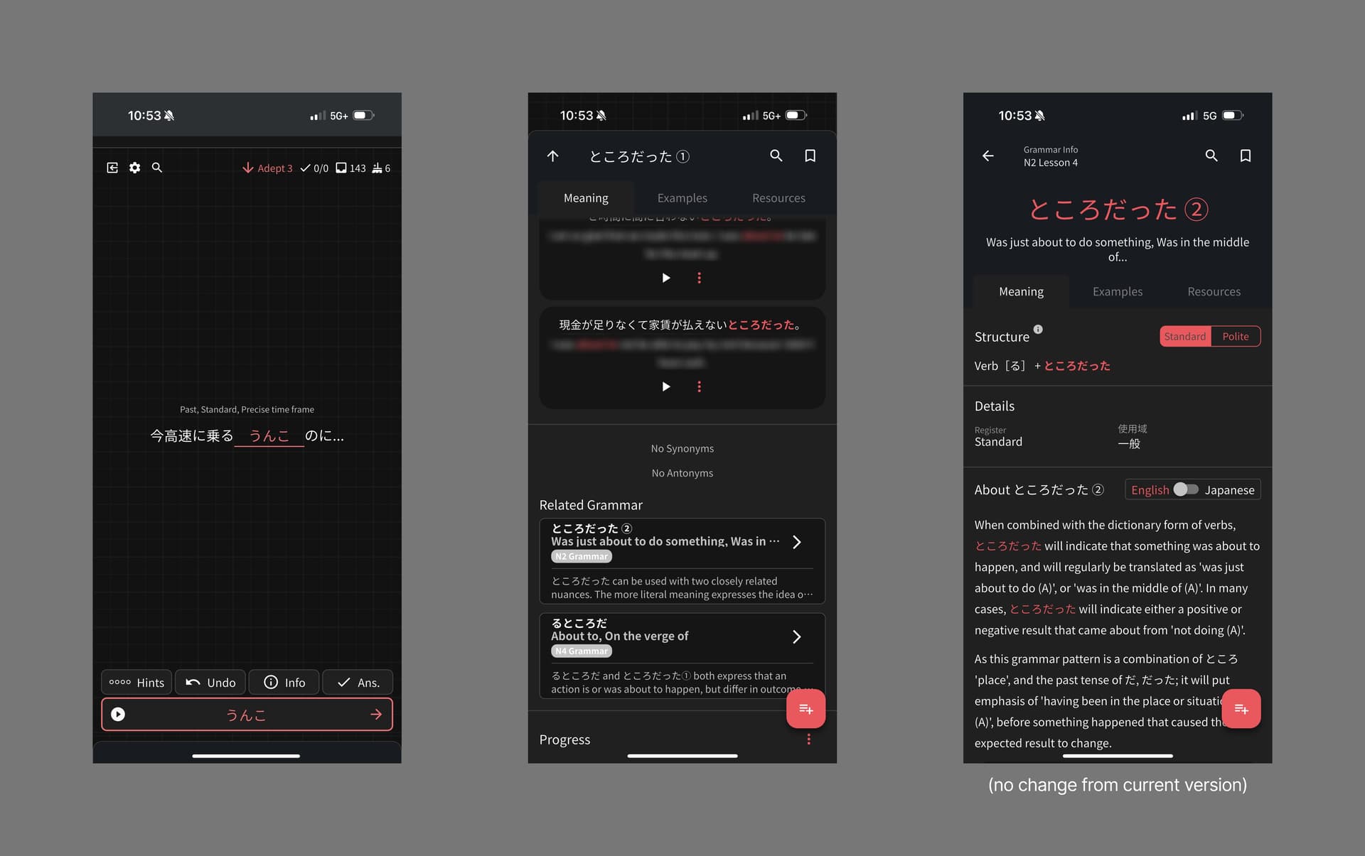 Current version (Review → Info → Related Grammar Point)