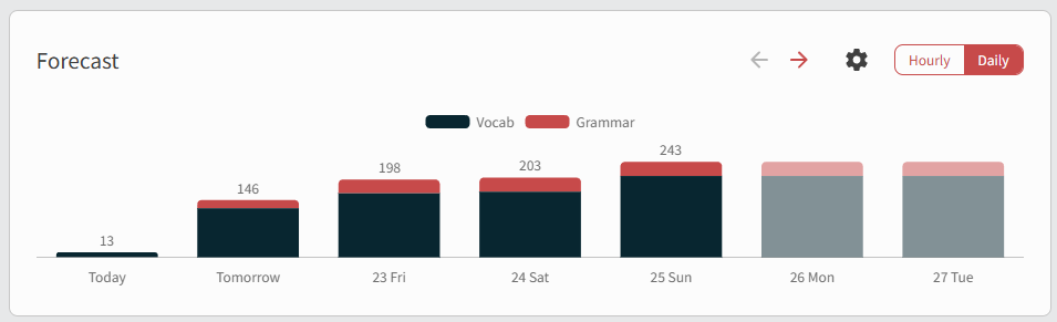 I believe it’s showing the total number of reviews that you have. So the 198 on 23rd is the 146 from tomorrow with about 50 new ones added in. You can hover over it to see how many reviews are being added each day.