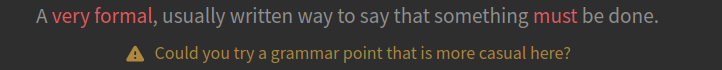 To be honest, I think nothing will ever make me get used to the different forms of saying “have to do~~” like it’s just a crapshoot. The hints will never be clear enough off the bat. I think its fair to get frustrated with that haha. It’s specifically that kind of problem that I made this thread for.