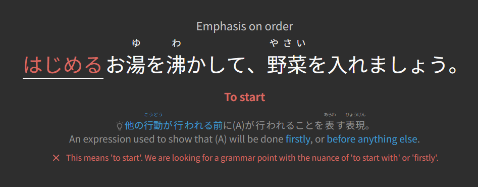 This one made me laugh, I know why it’s wrong, but I feel so silly reading the hint as “to start,” giving an answer that means “to start,” and still getting it wrong LMAO
