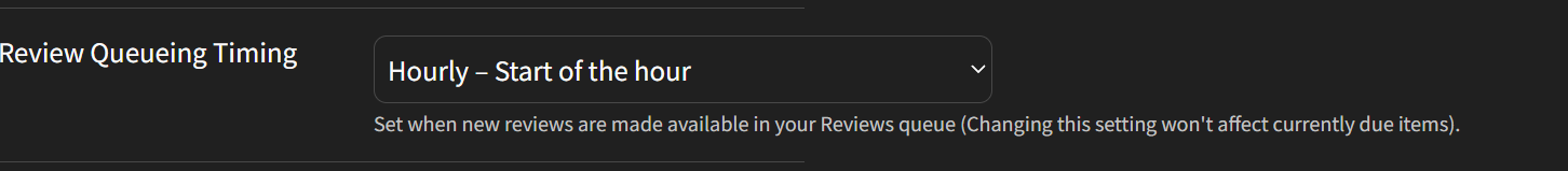 I’m just came back from after a free trial last year so everything seem different to me, but I’m confuse on how is the “hourly review” work on Bunpro compare to Wanikani. So is Bunpro got a grammar review every hour or it is really spread out in comparison to Wanikani cause it just hit 12PM there aren’t a new grammar review, so do I need to change my setting or it is work as intended?