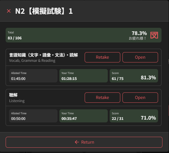 But the fact that I’m apparently already at N2 level right now makes me wonder… Should I be aiming for the N1 instead? Let’s take a practice test to find out…