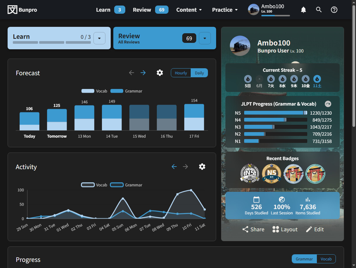 Yes it looks like that. However I’m trying to control the types of reviews that come my way. Mine just says I have such and such reviews to do. In my case, I want to just review grammar for a while. I don’t seem to be able to do that.