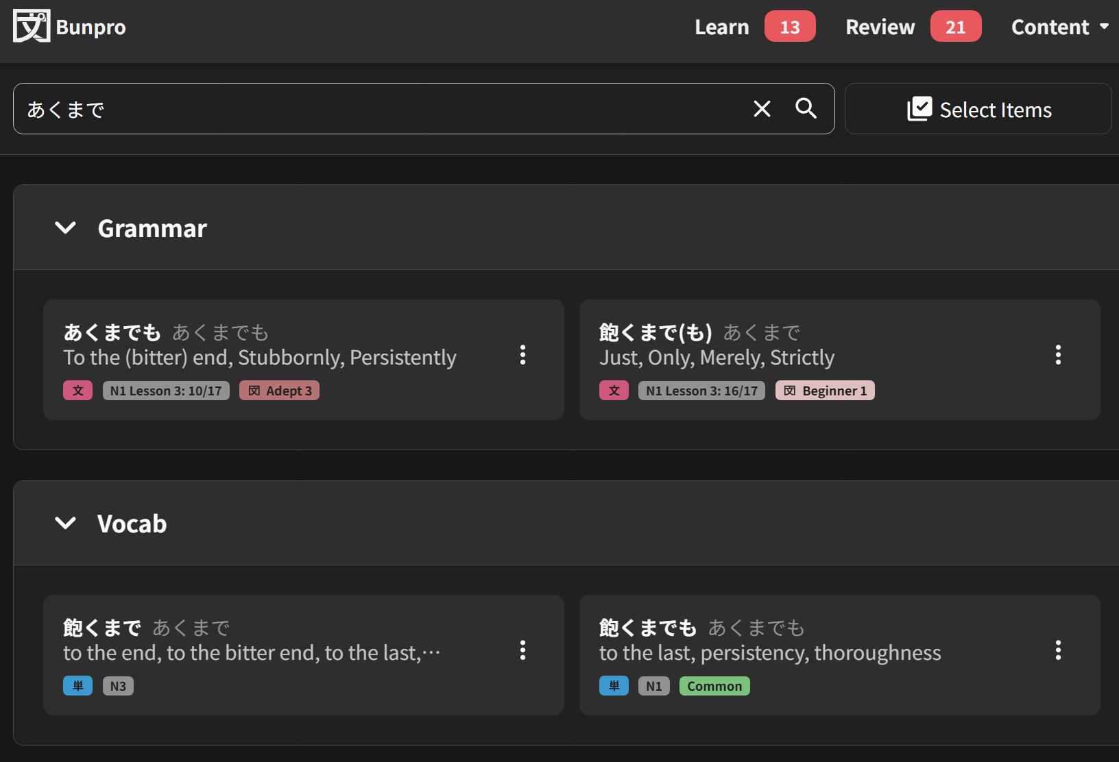 I passed N1 way back in 2021, so I’m really not fussed about what is or isn’t what JLPT level anymore. I’m just going back through all of Bunpro (grammar, not vocab) as a review and to make sure I cover any weird gaps I still have in my grammar knowledge/learn new perspectives for grammar I already know.