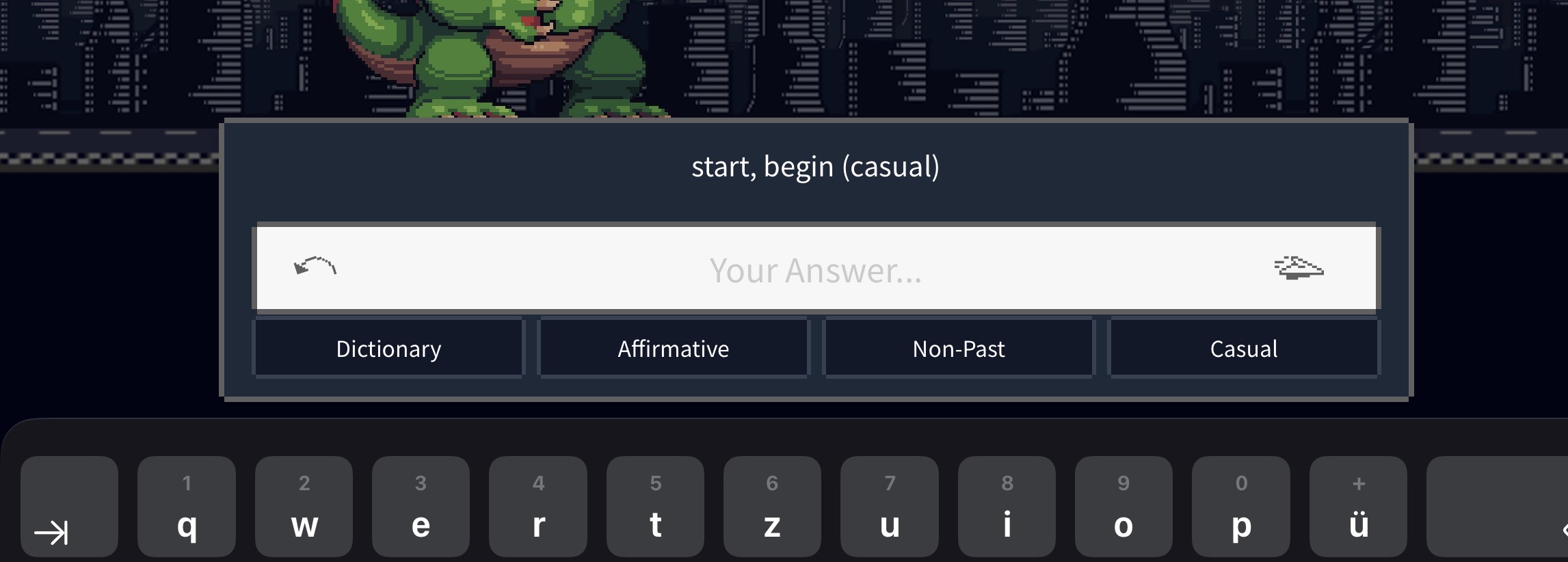 Firstly and it goes without saying, the conjugation game is an excellent feature and is in a great working state already! However, I would like a compact mode or similar so that information doesn’t require gymnastics jumping from top of screen - to the bottom, left to right, then back to the text entry bar.