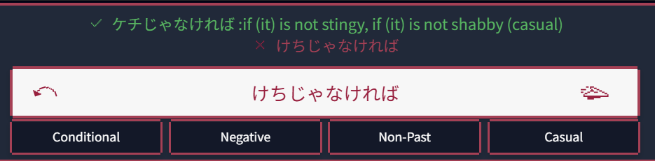 If I had to include this it would be using the already fully-shaped UI of Bunpro, with lots of configuration options. I don’t like to feel like I’m entering a new app or website because I’m practicing conjugation. I like to feel that all the tools for learning japanese are in the same place and with the same feeling.