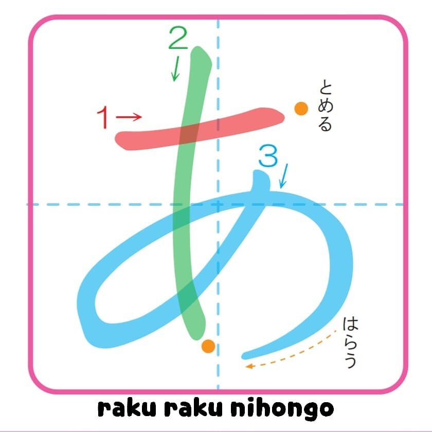 I found this diagram showing the tomeru and harau points of あ