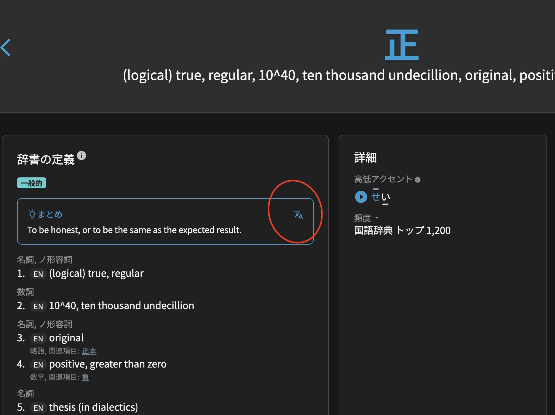 On the vocabulary lesson page, it’s on the left. You have main translations right below the word, and a blue rectangle with the explatation on the left. Clicking on the small icon in the upper right corner toggles japanese or english