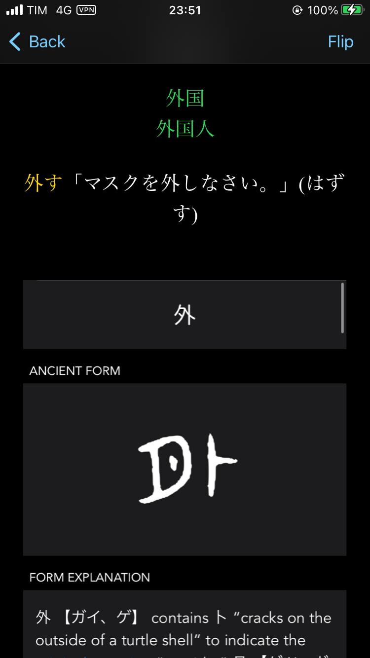 When I added enough words and I feel like learning kanji, I open anki and start doing reviews, when a new word appears, I try to research everything I can about it: etymology, type of kanji, its earlier appearance, components inside it and how they looked like, vocab, sentences, what are the other kanji with those components. Trying to ask as many quastions as I can. And adding some of that information in anki, less or more, based on how well I know the kanji and the associated word, so most of the time added stuff is only notes on which component gives sound, which component meaning, if there is one original meaning and form of the kanji, picture of old form/forms. This process usually takes 10 - 30 minues for each kanji, time needed depends on how well I know kanji, its components, word, averything else, and how much info I’ve got from my main sources. Somethimes it takes 2-3 hours but I learn a bunch of different stuff about China and probably understand the whole branch of kanji much better than before (before == non).