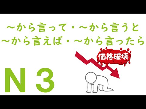 皆さん、こんにちは。今日はN2の文法を「~からいうと・~からいって・~からいえば」について説明をしていきたいと思います。 「~からいうと・~からいって・~からいえば」は前に名詞が来ます。 意味は「お考えると」・「~から判断すると」・「その点についていうと」という意味ですね。例文を見ていきましょう。 中国は人口からいうと世界一です。しかし、日本と比べて人口密度はずっと低いです。 人口の点からいうと、人口から判断するとという意味ですね。次の例文です。 でざいんからいえば、これが気に入ったが、値段がとても高い。 でざいんから判断するとや、でざいんの点からいうとという意味ですね。次の例文です。 彼女の能力からいって、優勝するのではないかと期待されている。 彼女の能力から判断するとという意味ですね。最後の例文です。 彼の日本語力から言えば訂正するところはあるが、内容はよい。 彼の日本語力から判断するとという意味ですね。 今日は「からいうと・からいって・からいえば」の説明をしていきました。 皆さんしっかり復習しておいてください。